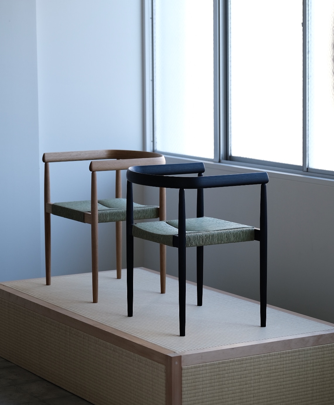 今回の展示では、八代市産の藺草(いぐさ)で座面を編み上げた新作の椅子が登場します。