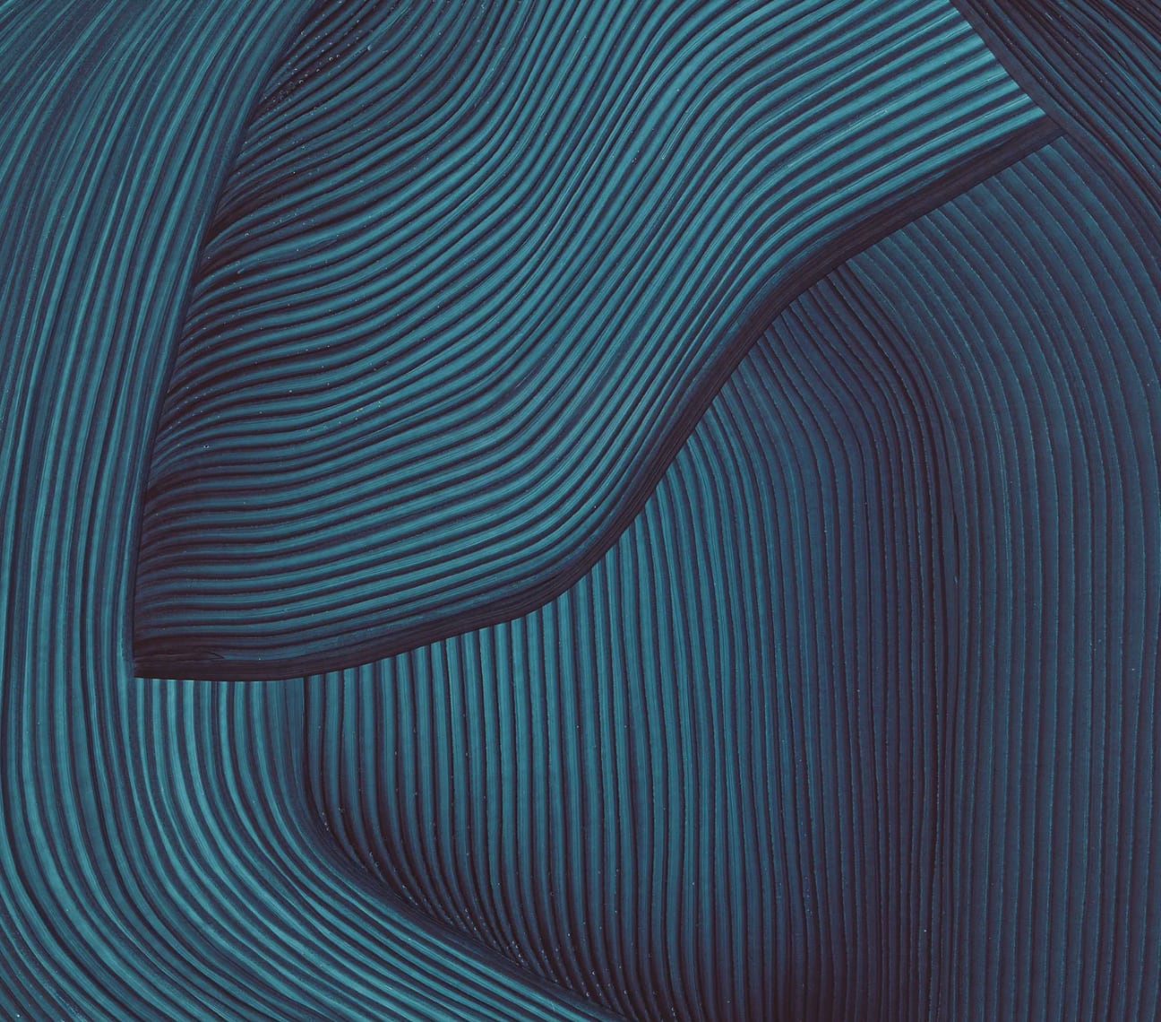 細い線を幾度にも重ねることで構成されており、その線の集積によって有機的な形態や動きが生み出される。視覚的なリズムや感覚的な美しさを重視している点が特徴である。