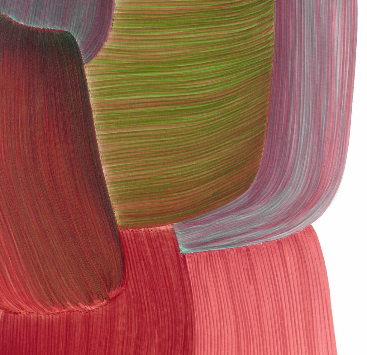 細い線を幾度にも重ねることで構成されており、その線の集積によって有機的な形態や動きが生み出される。視覚的なリズムや感覚的な美しさを重視している点が特徴である。