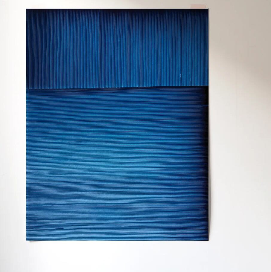 細い線を幾度にも重ねることで構成されており、その線の集積によって有機的な形態や動きが生み出される。視覚的なリズムや感覚的な美しさを重視している点が特徴である。