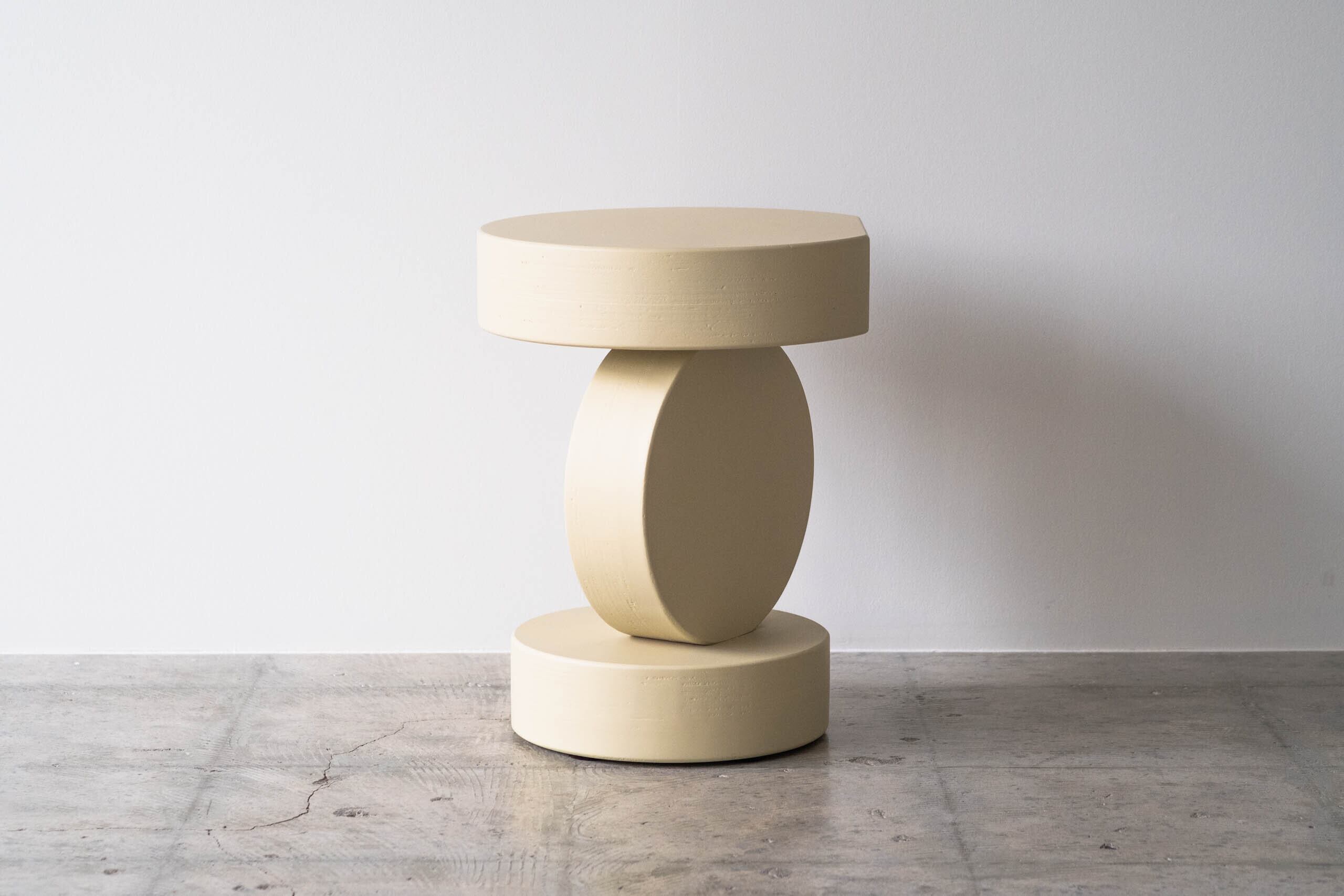 座面や脚の位置を少しズラすことによってスツールという枠を越えてオブジェとして