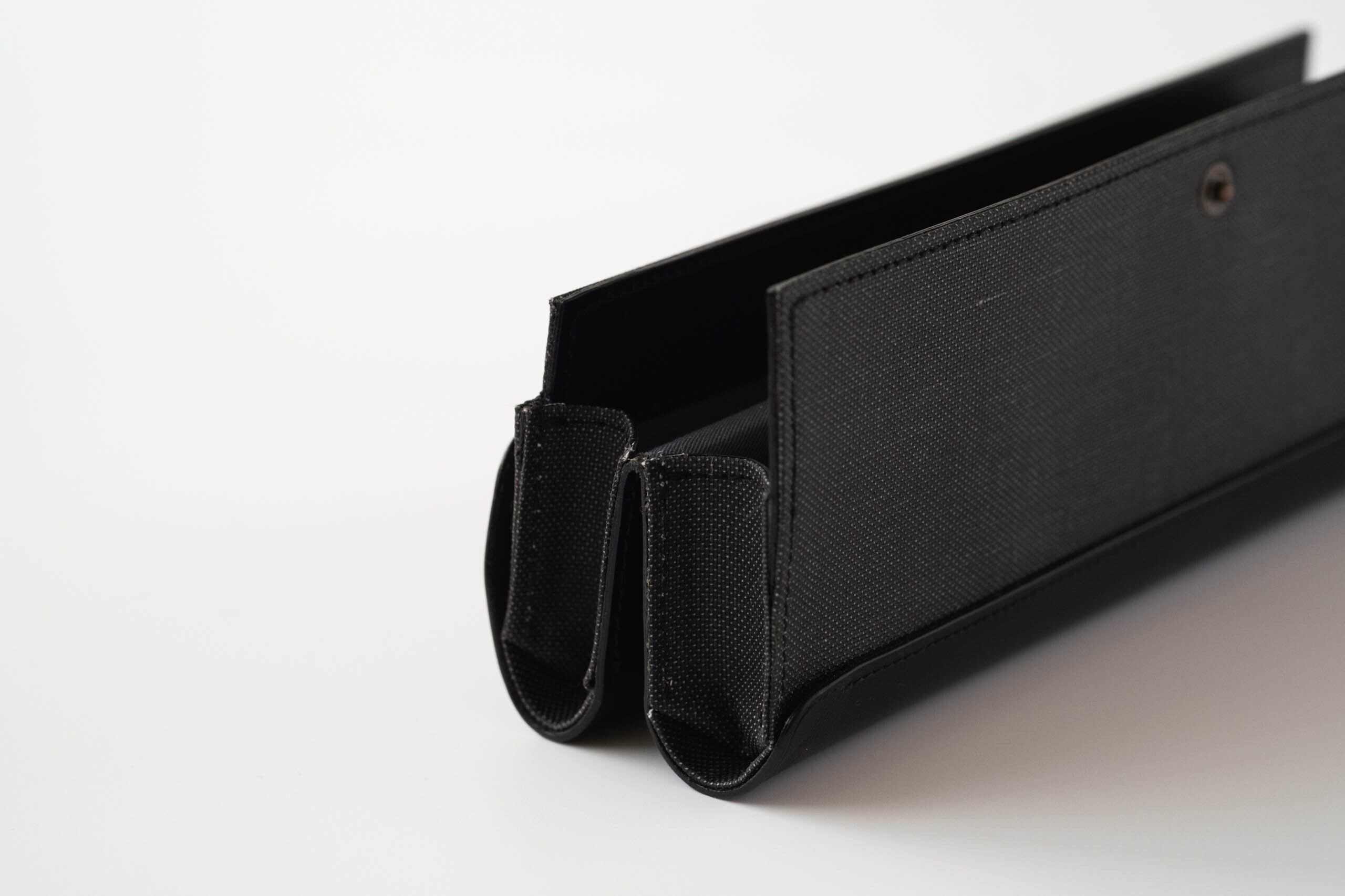 箱ではないのでかさばらず、使い込むと道具の重さで自立するようになるので